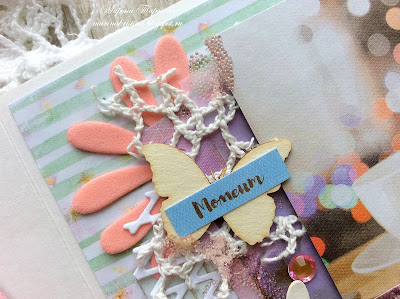 - необходимые украшения для составления композиция (с своей работе использовала бумагу для скрапбукинга коллекция "Мой день" от FLEUR design, высечки, вырубку, кружево, чипборд, стразы, микробисер)